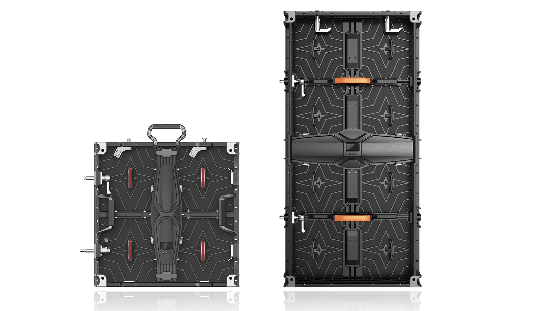 2. Ultra-slim and lightweight die-casting aluminum design: ideal for rental applications requiring portability. The 500mm×500mm cabinet weighs 7.5kg, the 500mm×1000mm weighs 12.5kg, with a thickness of 85mm;