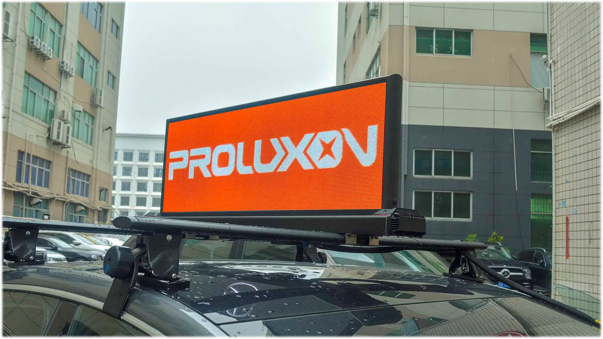 PROLUXON hot-selling P2, P2.5, P3.076, P4 and P5 taxi top LED displays.
