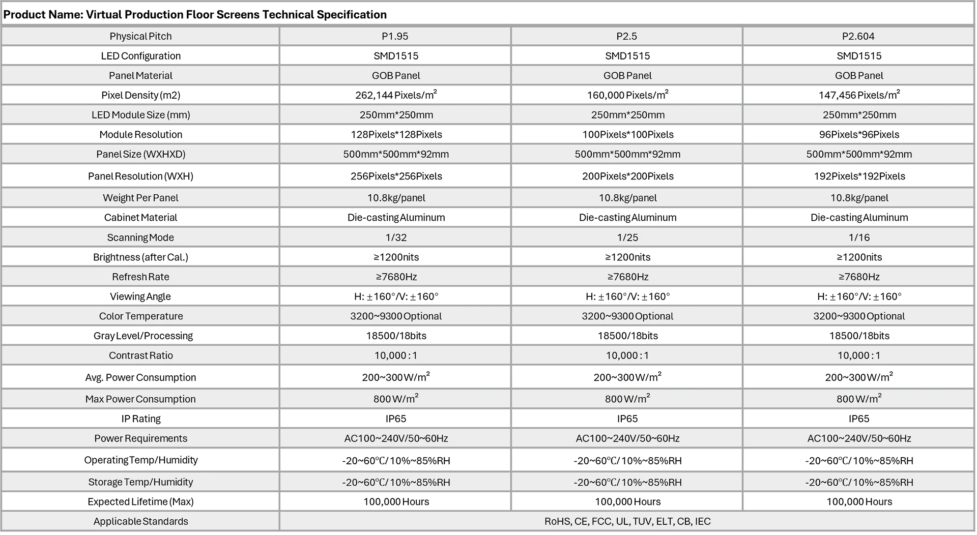 02. Floor pixel pitch models: 1.95 mm, 2.604 mm;